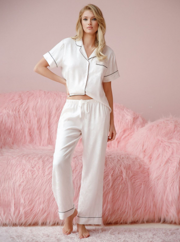 Женская пижама состоит из мягкой ткани, которая обеспечивает комфортный сон и приятные ощущения при ношении.