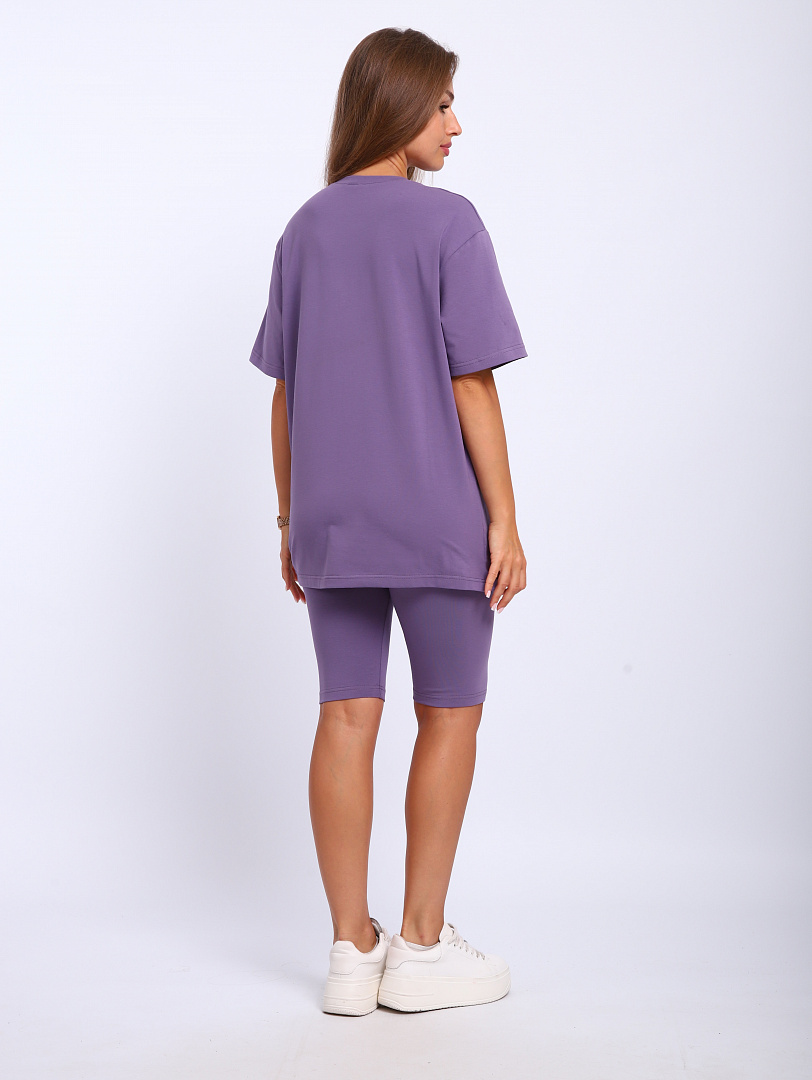 Костюм женский. Выполнен и трикотажного полотна кулирка с лайкрой. Велосипедки полуприлегающего силуэта, футболка свободного кроя.