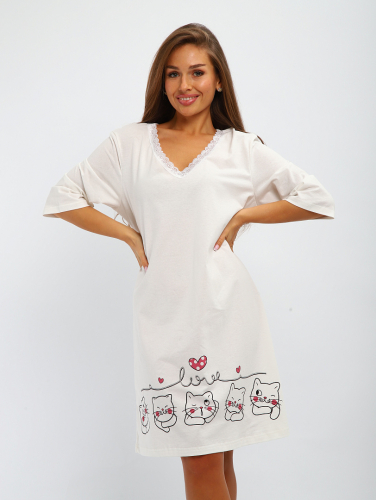 Ночная сорочка женская на бретельках. Сорочка выполнена из трикотажного полотна "кулирка". Длина сорочки чуть выше колена.