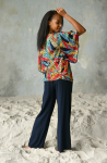 Комплект состоит из туники и брюк. Туника свободного силуэта с широкими рукавами длиной 3/4 выполненна из принтованной вискозы. Брюки свободного силуэта на поясе-резинке выполненны из однотонной вискозы. 100% вискоза