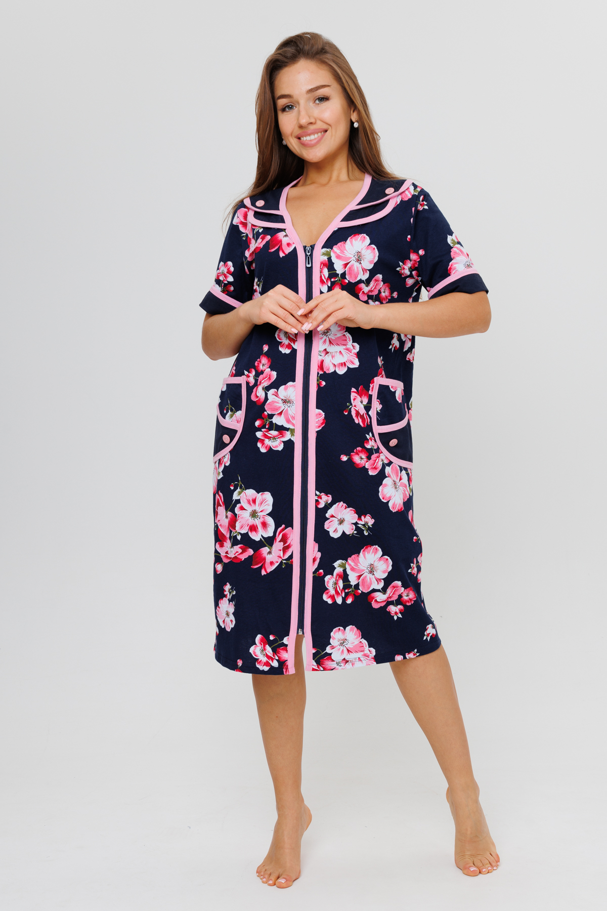 Все элементы халата: воротник, карманы, манжеты рукавов обработаны яркой окантовкой.