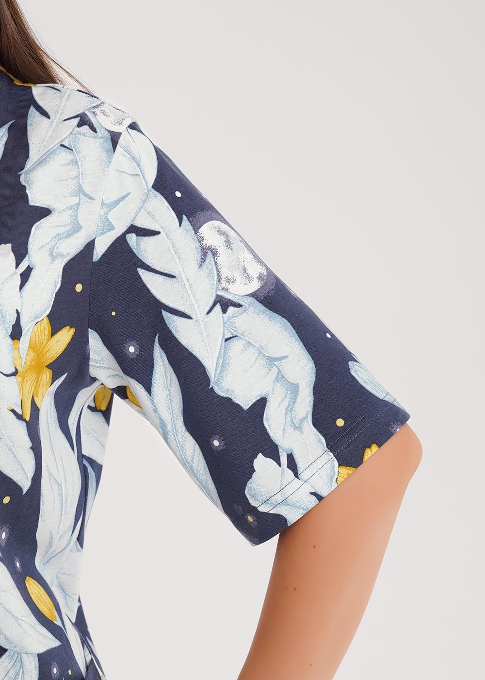 "Описание: Платье прямого силуэта из хлопкового трикотажного полотна с добавлением модала. Короткий втачной рукав. Округлая горловина с обтачкой. Спереди накладные карманы с кантом. По бокам разрезы.