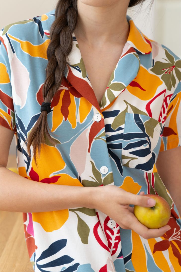 Домашний халат на пуговицах с элегантным отложным воротником. На груди накладной карман.