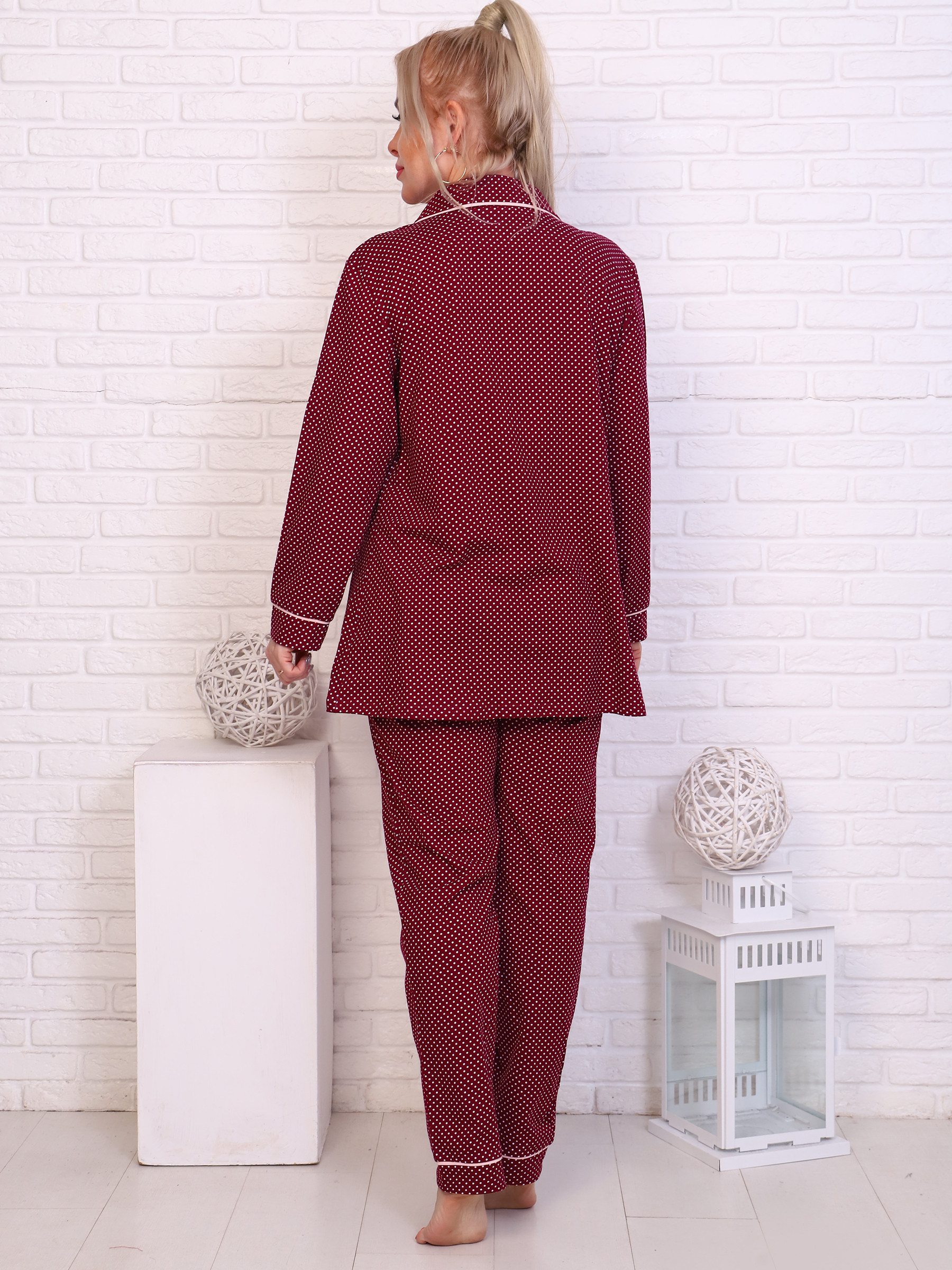 46034 Пижама женская, горох, бордо