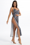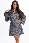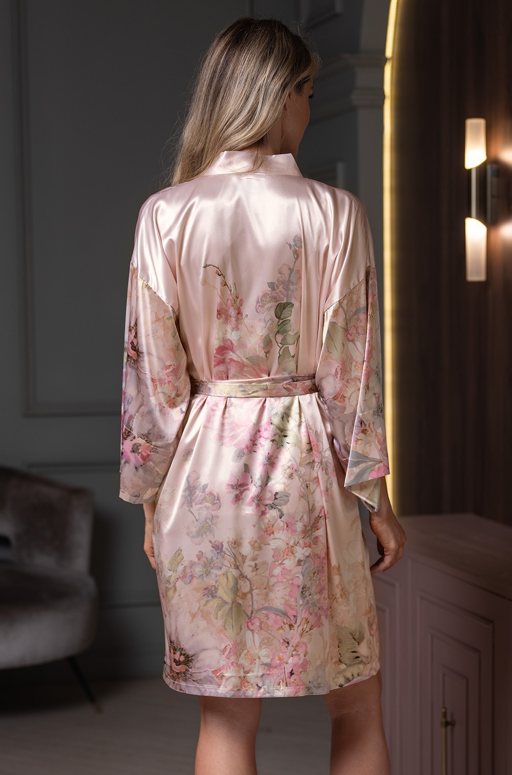Короткий запашной халат Mia-Amore с рукавами длиной 7/8 выполнен из смесового принтованного шёлка. В боковых швах удобные карманы, халат завязывается на талии съёмным поясом.
