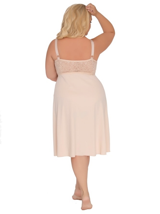 Телесный 40/L Сорочка 576 из эластичной микрофибры, лиф мягкий кружевной, продублирован микрофиброй, бретели регулируются по длине, спинка кружевная, под грудью пришита широкая эластичная резинка. полиамид 85%, эластан 15%