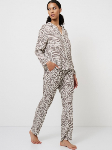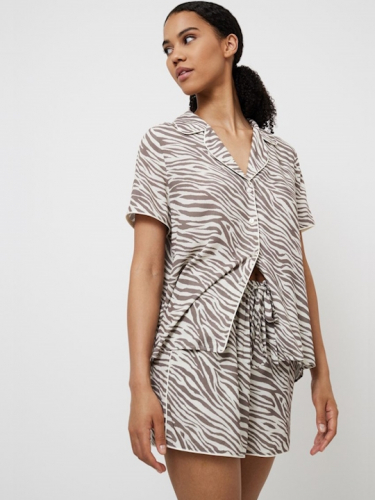 Капучино 34(XS), 36(S), 38(M), 40(L), 42(XL), 44(XXL) Представляем вам короткую пижаму с шортами Manuela, в которой комфорт сочетается с элегантностью в стиле сафари и капелькой приключений. Пижама выполнена из шикарной блестящей вискозы с принтом в виде зебры. Отдохните по-королевски в рубашке с короткими рукавами, на пуговицах, с закругленным V-образным вырезом и изысканной кремовой окантовкой по краям воротника, спереди и рукавов. Шорты прямого кроя с поясом-бантом. Этот ансамбль обеспечивает как функциональность, так и шикарную изысканность. Расслабляетесь ли вы после напряженного дня или отдыхаете в свое удовольствие в выходные, пижама Manuela Long приглашает вас насладиться комфортом с оттенком дикого очарования, превращая каждый момент дома в стильный отдых. 100% вискоза