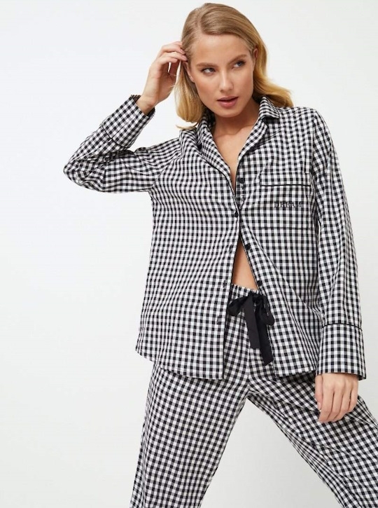Черный+белый 34(XS), 36(S), 38(M), 40(L), 42(XL), 44(XXL) Откройте для себя элегантность, неподвластную времени, с пижамой Philippa long. В сочетании черных и белых оттенков в клетку вы почувствуете спокойствие и гармонию, которые приведут вас к спокойному сну. Рубашка с длинными рукавами, v-образным вырезом горловины и карманом, украшенным вышивкой "Мечта", а также застегивающийся на пуговицы топ с потайной вышивкой "со мной" между пуговицами, добавляющей оригинальности вашему образу перед сном. Рубашка украшена тонким черным кантом, который дополняется черной поясной лентой на брюках, придающей образу элегантность и стиль. Не оставляйте без внимания свою вторую половинку они могут присоединиться к уютному веселью в пижаме Philip pajama long, пока вы будете качаться в пижаме Philippa pajama long. Это идеальное сочетание для стильного и уютного вечера — просто не забудьте разделить с ней комфорт! Ткань хлопок текстильный. 100% хлопок