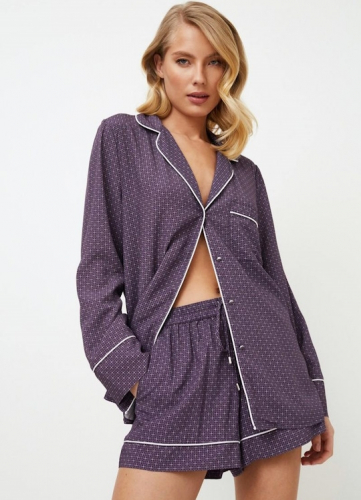 Коричневаяроза 34(XS), 36(S) Пижамы с принтом зебры изготовлена из мягкой и матовой чистой вискозы. Верх украшен окантовкой воротника и манжета. В то время как штаны украшены эластичным поясом и регулируемым бантом на талии. 100% вискоза