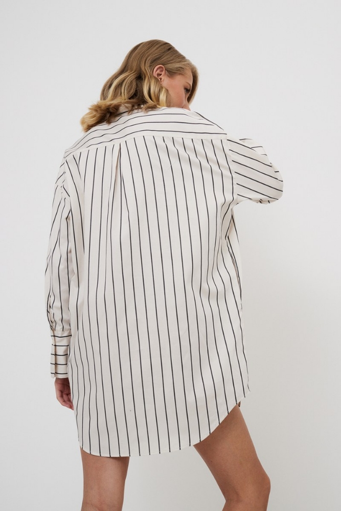 Кремовый 34(XS), 36(S), 38(M), 40(L), 42(XL), 44(XXL) Представляем вам ночную сорочку Seraphine, в которой комфорт сочетается с неподвластной времени элегантностью в каждой строчке. Сорочка изготовлена из лёгкого хлопка, а кремовый цвет с полосками создаёт узор, излучающий классическое очарование. Сорочка с длинными рукавами на пуговицах, которое сидит на фигуре как влитое. Классический воротник придаёт изысканность, а закруглённый низ создаёт свободный силуэт, который движется вместе с вами. Удобные боковые карманы — это стильно и практично. Ночная сорочка Seraphine создана для комфорта. 100% хлопок