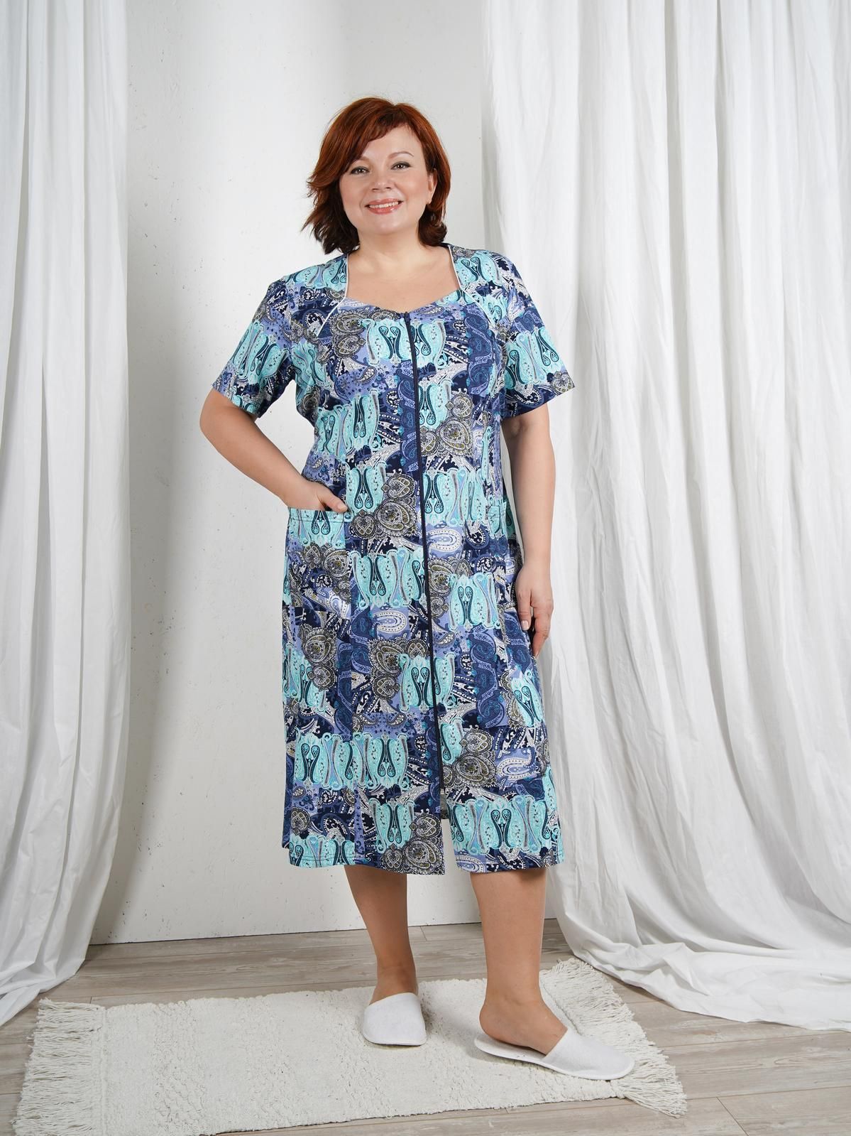 Легкий и удобный домашний халат на молнии. Модель полуприталенного силуэта с короткими рукавами и накладными карманами. Такой халат обязательно порадует качественным и приятным к телу материалом, комфортным фасоном и красивой расцветкой.