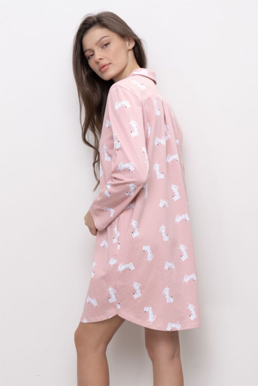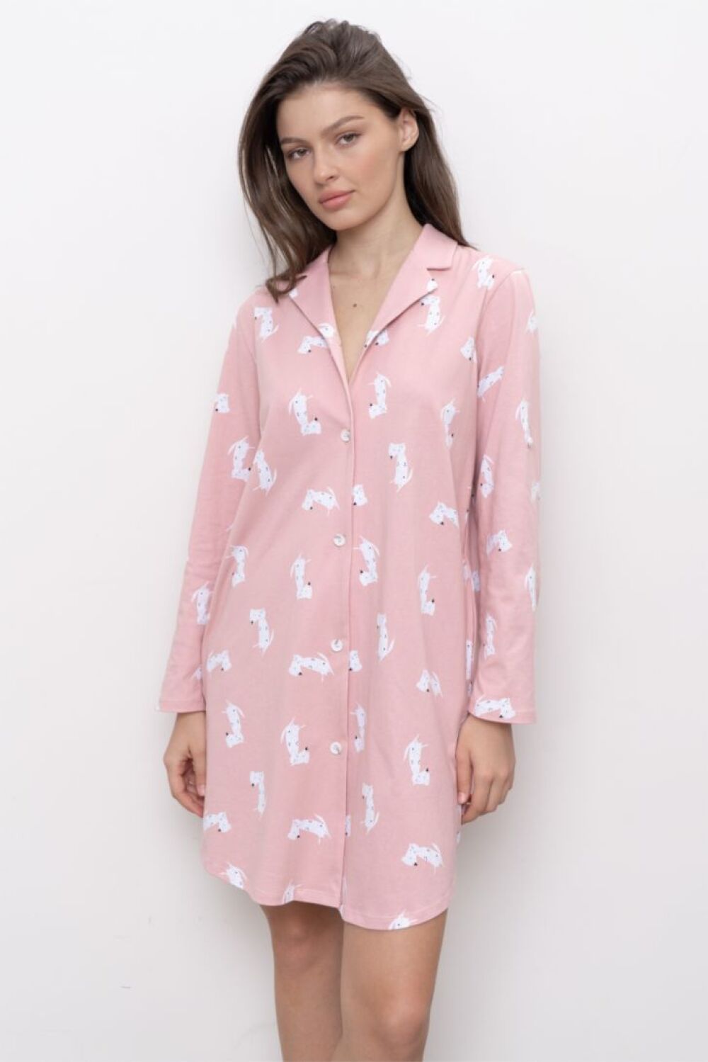 ""Халат- рубашка с фигурным вырезом по низу. Рукав длинный, воротник английский."