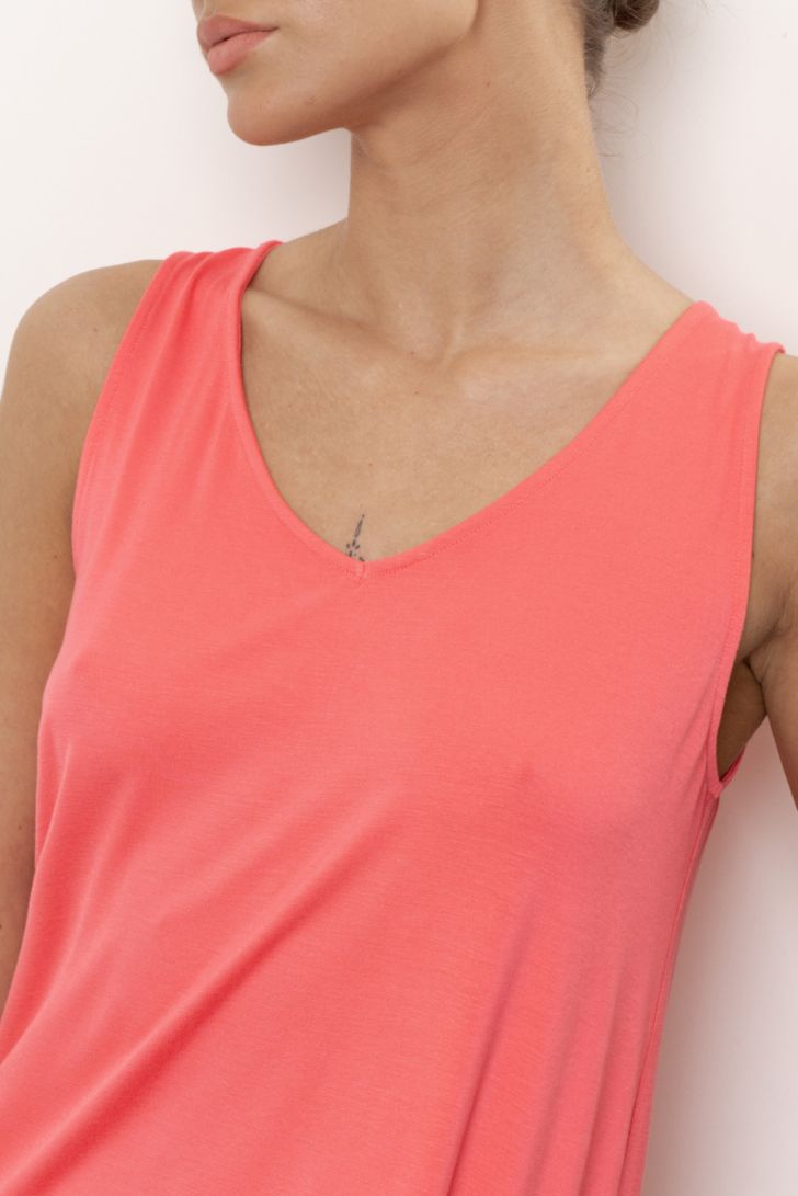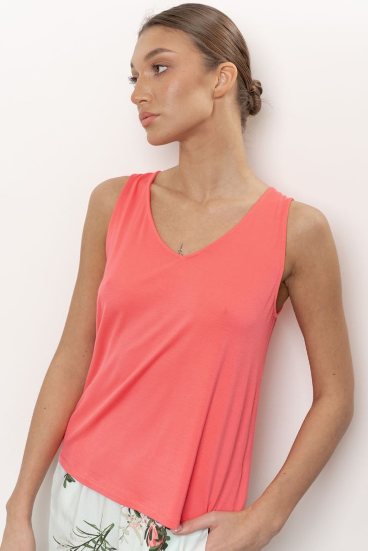 Топ свободного прилегания из бамбука на широкой бретели. Вырез топа Vобразный. Модель представлена в двух цветовых решениях."