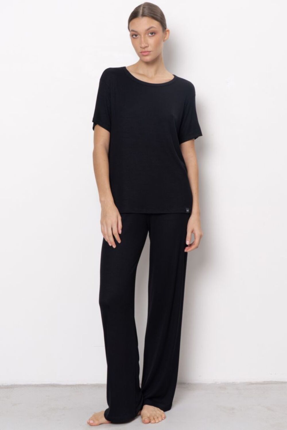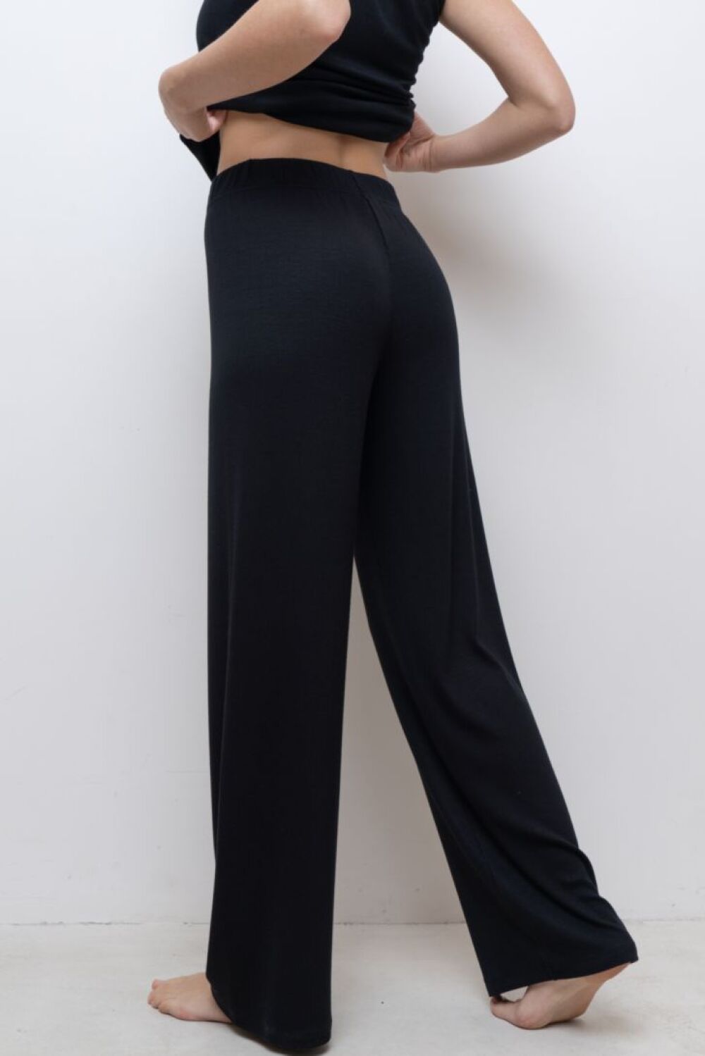 Широкие, струящиеся брюки на поясе с мягкой резинкой. Брюки тактильны и комфортны в носке. Удобны для домашних активностей и отдыха. Модель представлена в трех цветовых решениях."