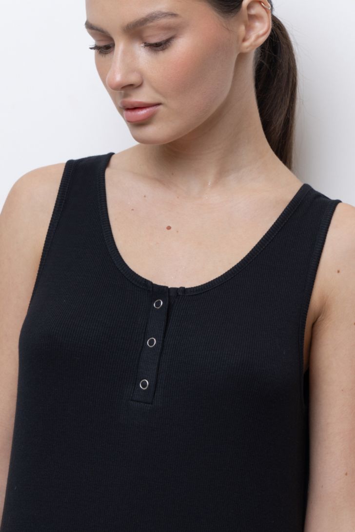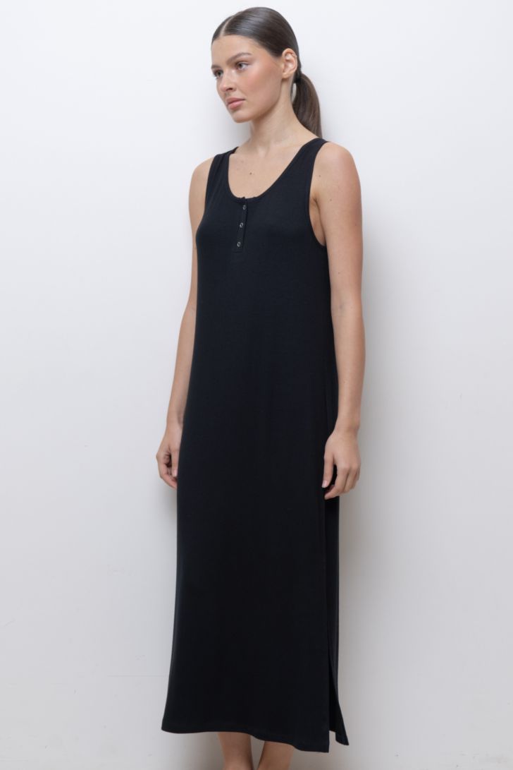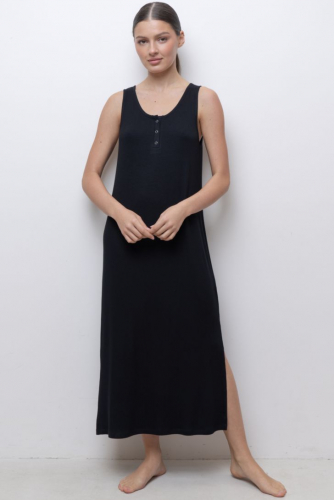 Платье свободного силуэта без рукавов. Вырез горловины круглый, дополнен функциональной планкой на кнопках. Для большего комфорта в боковых швах предусмотрены разрезы. Модель уместна как для дома, так и для комфортного загородного, пляжного отдыха. Платье представлено в трех цветовых решениях."