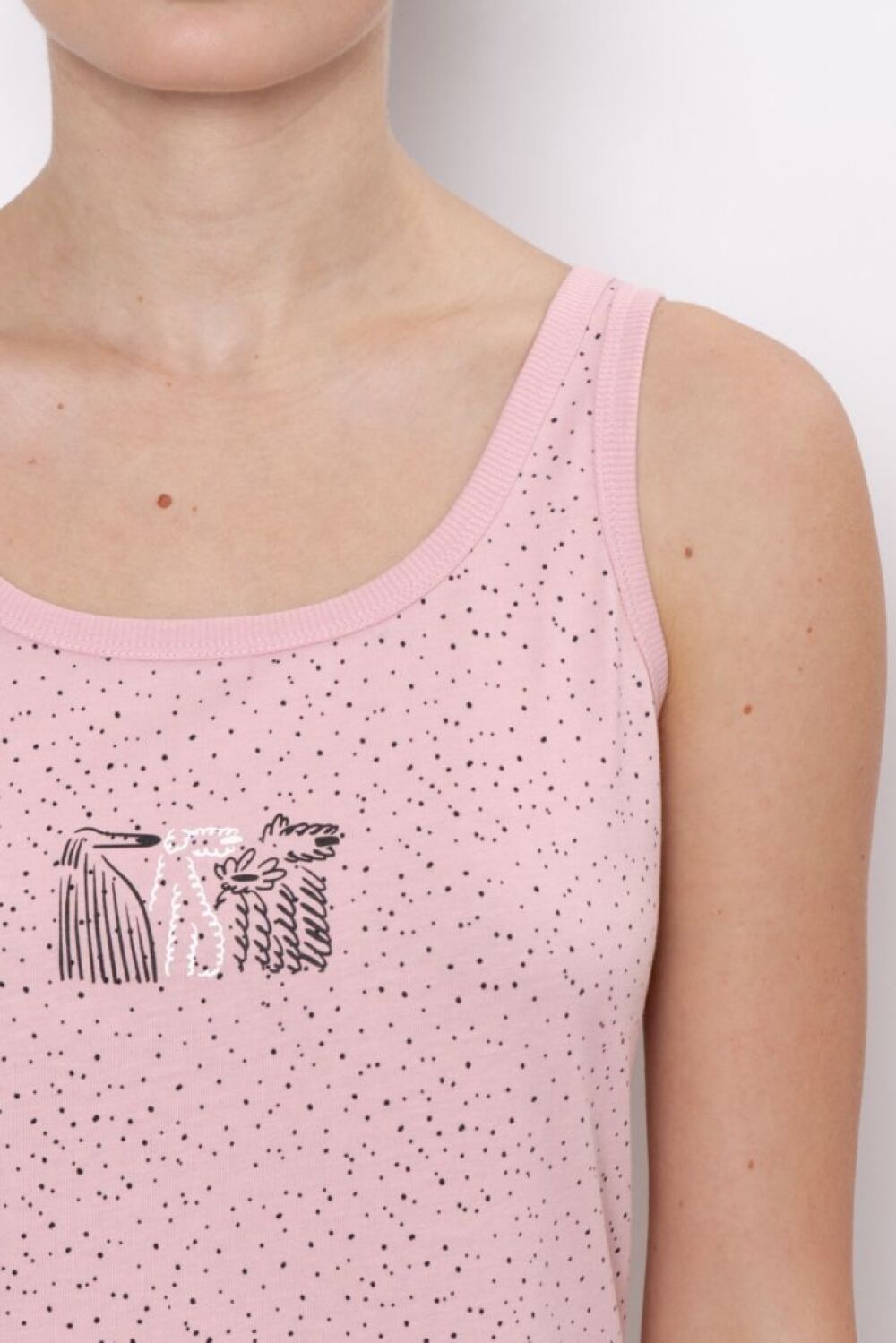 ""Сорочка-майка на широких бретелях. Вырез горловины круглый. Пройма и горловина обработаны обтачкой из кашкорсе."