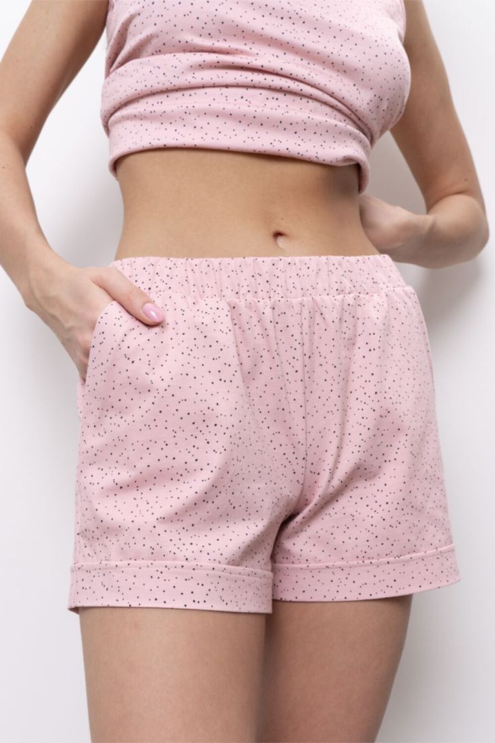""Шорты на мягкой резинке с манжетами. В боковых швах функциональные карманы."
