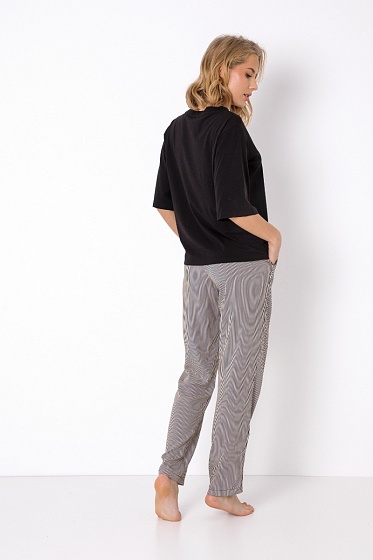 Пижама женская со штанами изготовлена из вискозы. Свободная футболка с рукавом 3/4 из нежной вискозы. Штаны свободного кроя из текстильной вискозы, пояс на резинке со шнурком. Верх: 95% вискоза, 5% эластан Низ: 100% вискоза