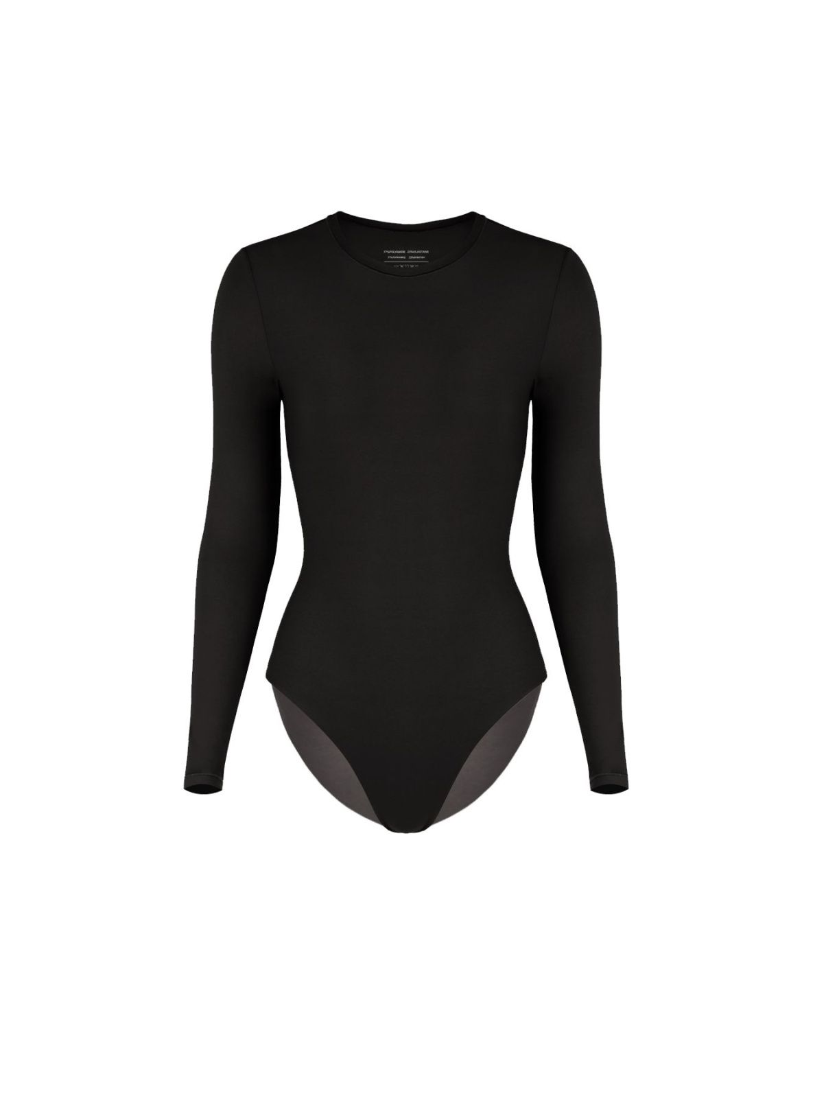 Классическое женское боди с круглым вырезом и длинным рукавом из лёгкой и мягкой ткани обладает высокой прочностью и эластичностью.  Боди хорошо облегает фигуру, подчеркивая ее преимущества и скрывая недостатки.  Снизу боди застёгивается на заклёпки.  Данное изделие можно использовать в качестве нижнего белья или элемента одежды для дополнения образа.