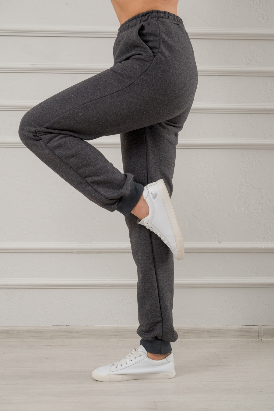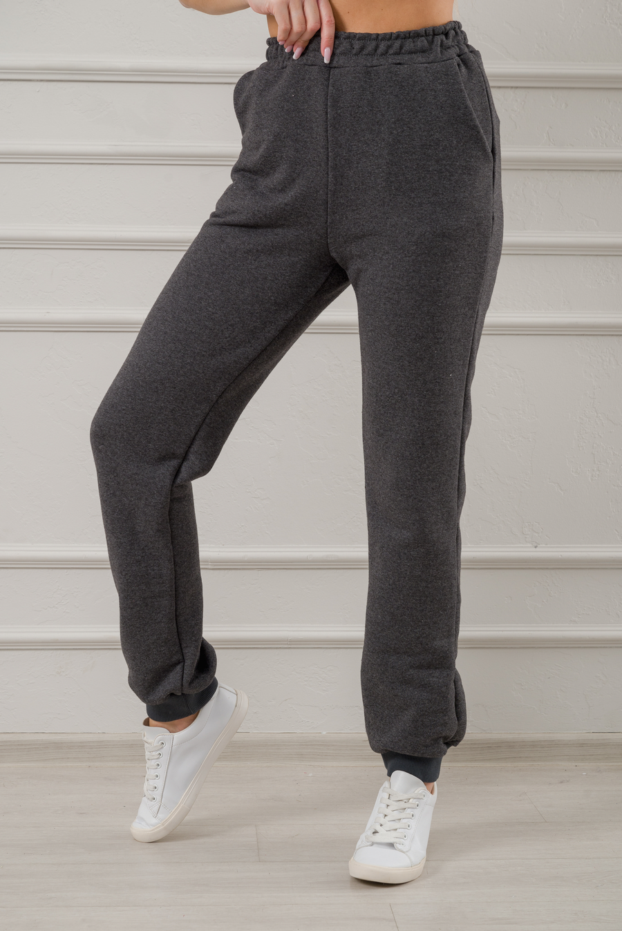 Брюки женские на манжете из футера петля Льдинка антрацит меланж