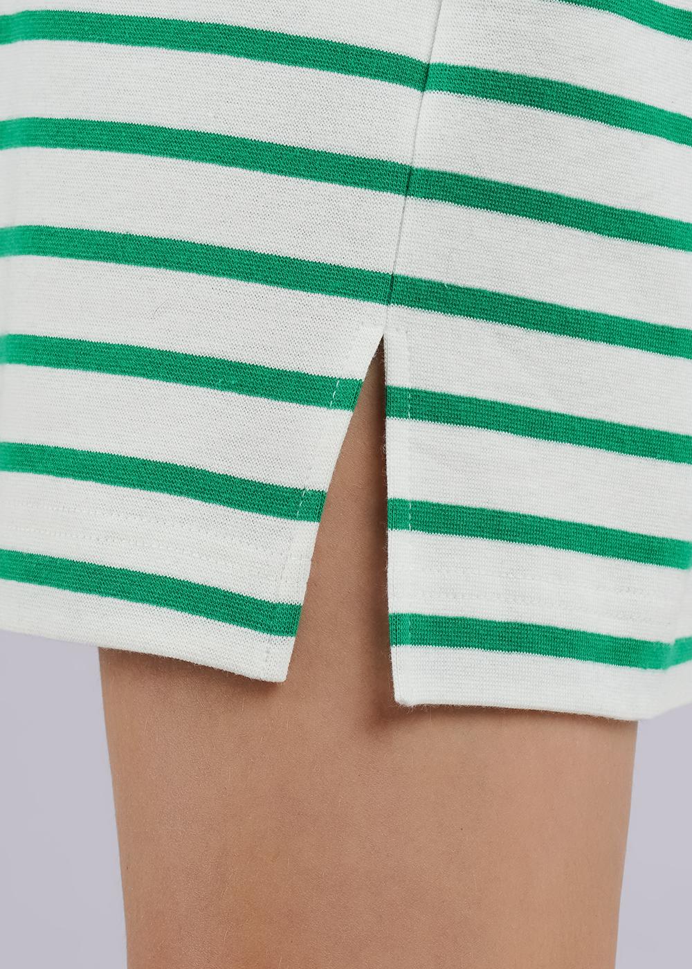 Платье для дома из трикотажного полотна рибана. Прямого силуэта, короткий втачной рукав. По бокам разрезы. На детали переда принт. Округлая горловина с обтачкой из рибаны.
