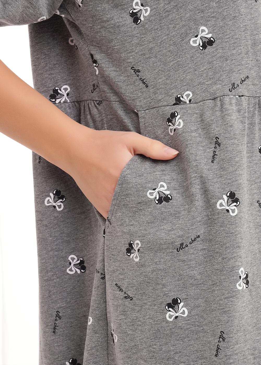 CLE LDR26-1210/2 Платье женское для дома LDR26-1210/2 меланж т.серый/белый