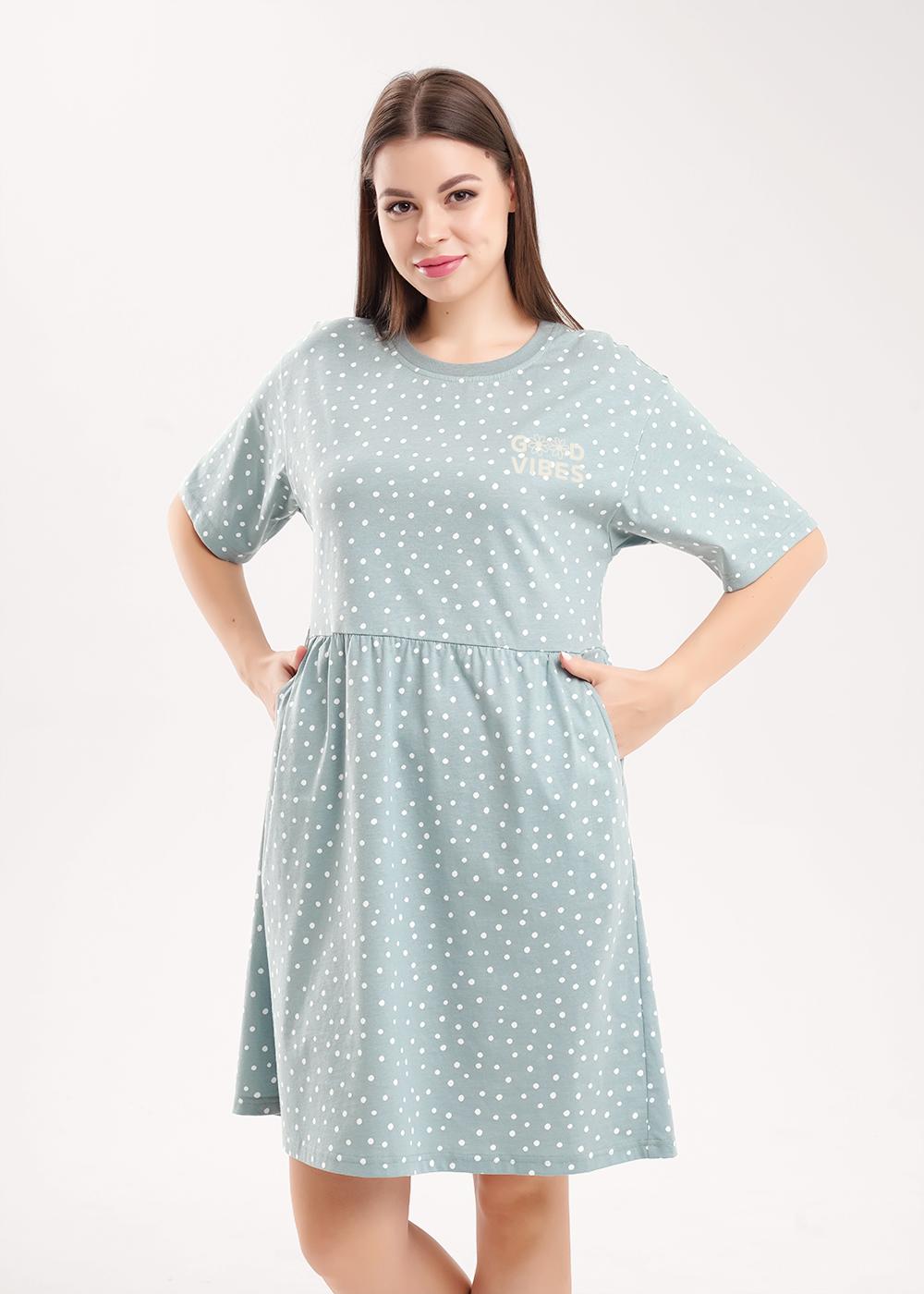 CLE LDR26-1225 Платье женское для дома LDR26-1225 зелёный/молочный
