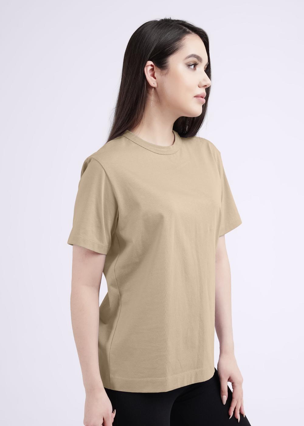 Футболка женская из трикотажного хлопкового полотна. Классический прямой крой. Округлая горловина с окантовкой. Короткий втачной рукав.