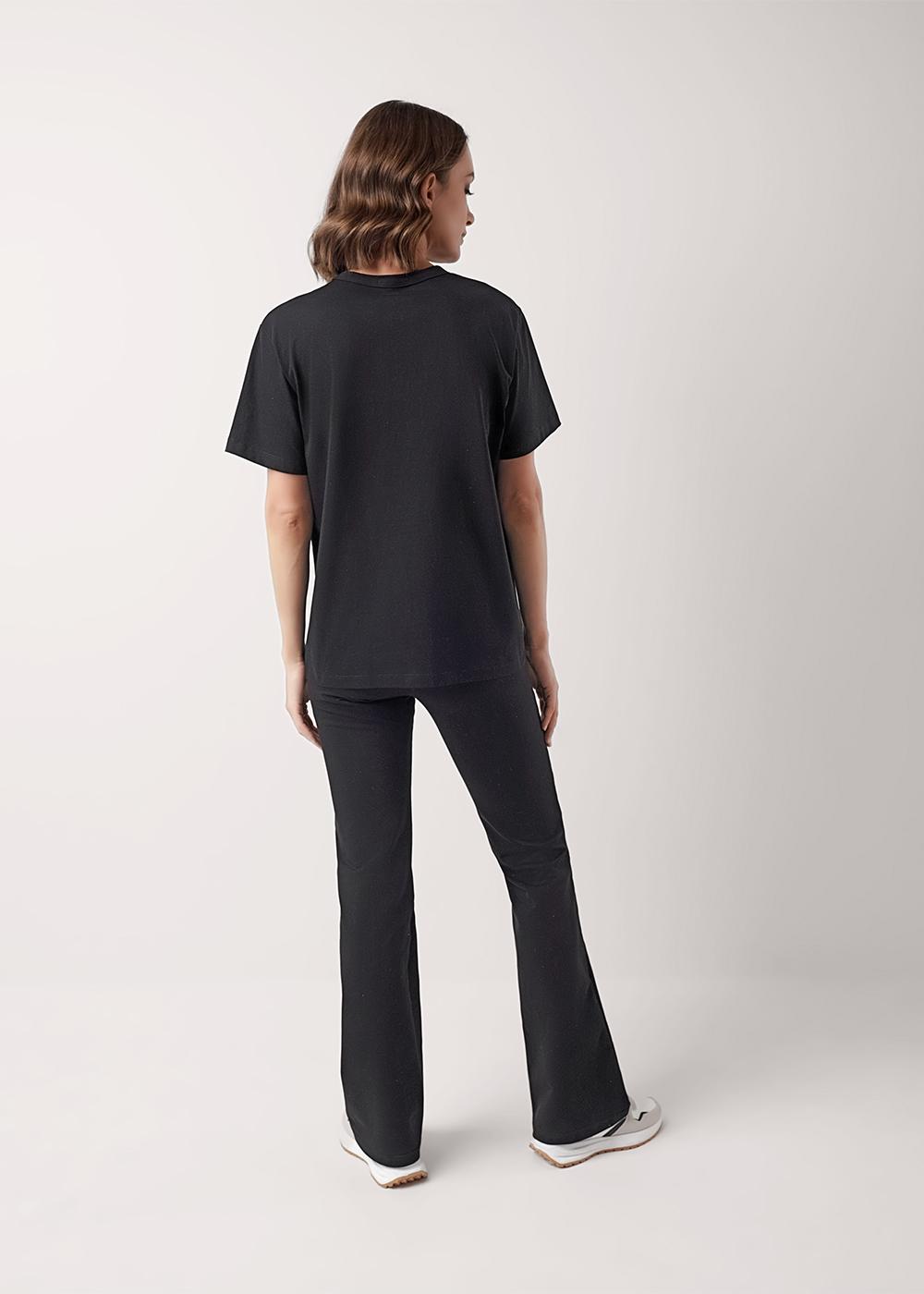 Футболка женская из трикотажного хлопкового полотна. Классический прямой крой. Округлая горловина с окантовкой. Короткий втачной рукав.