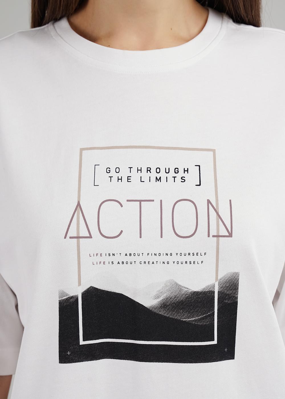 Футболка прямого силуэта из плотного трикотажного полотна. Со спущенным рукавом длиной до локтя. Круглый вырез горловины.