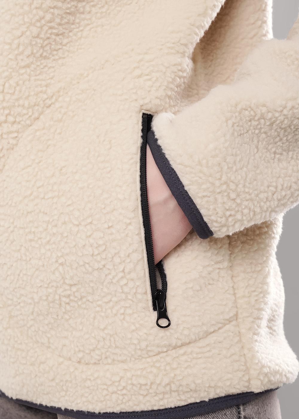 Куртка спортивная из трикотажного полотна велсофт, на молнии. По горловине стойка. Спереди карманы на молнии с закреплением мешковины. Длинный рукав со спущенной линией плеча, нашивка. По низу рукава и низа изделия окантовка.