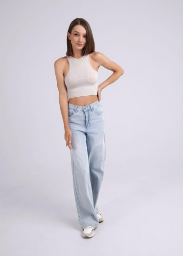 Женская майка-топ из микрофибры с эффектом "Варки". Майка плотного прилегания, по низу вывязана широкая резинка