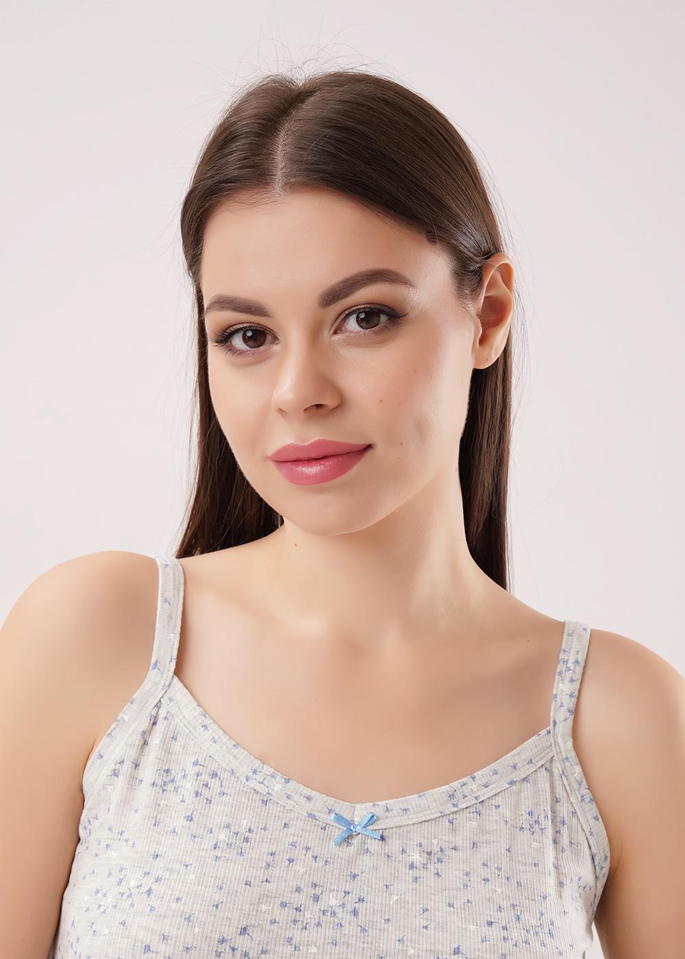 Пижама для дома и отдыха из трикотажного вискозного полотна кашкорсе. Майка на узких бретелях. По горловине и пройме окантовка, спереди бант. Шорты прямые, по талии пояс на внутренней резинке. По низу майки и шорт мелкий оверлок.