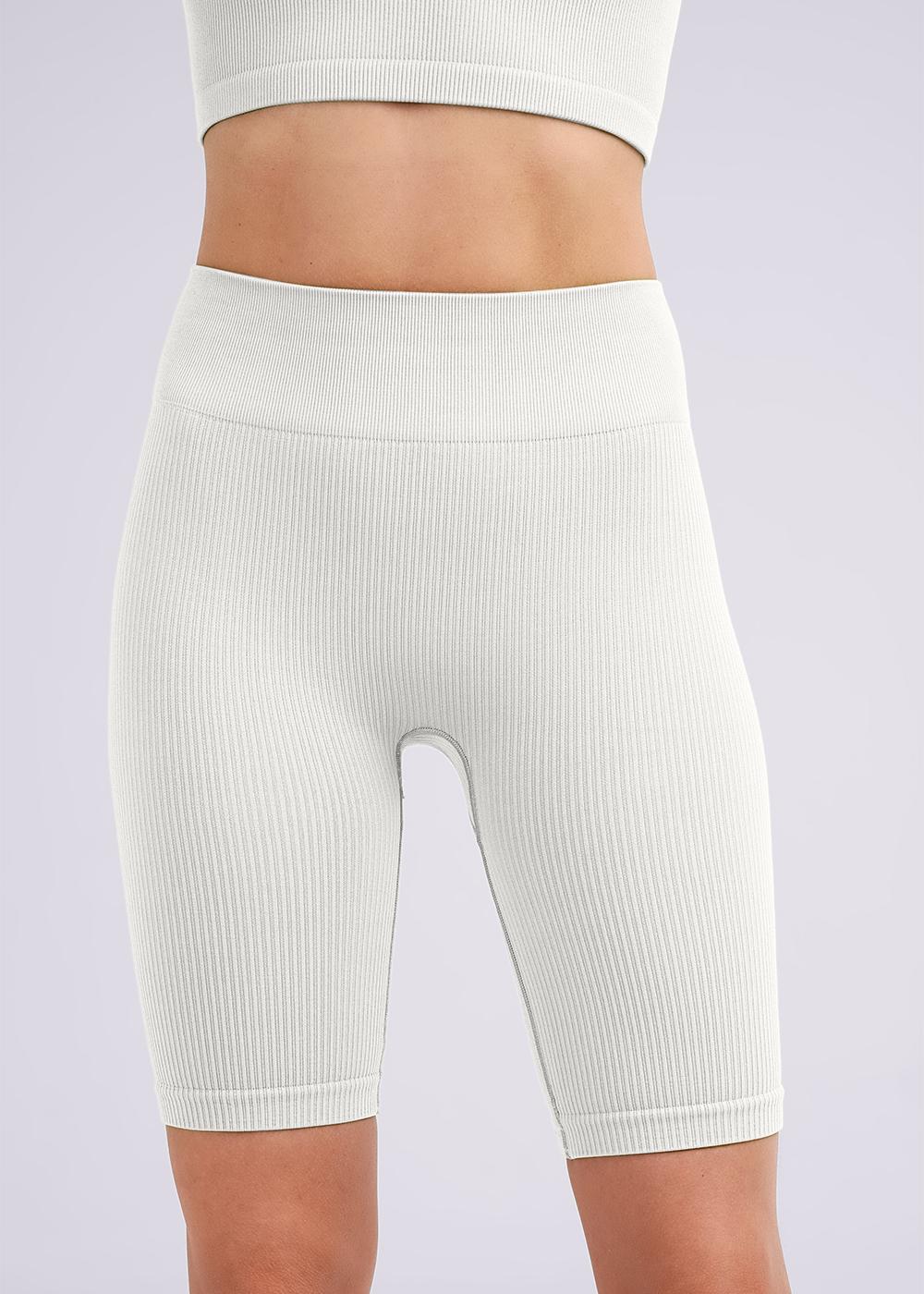Женские шорты в рубчик с высокой посадкой. По талии широкая резинка, обеспечивающая комфортную посадку.