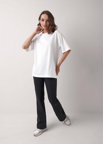 Брюки женские из хлопкового трикотажного полотна футер 2-х нитки. Клеш от колена. Отрезной пояс.