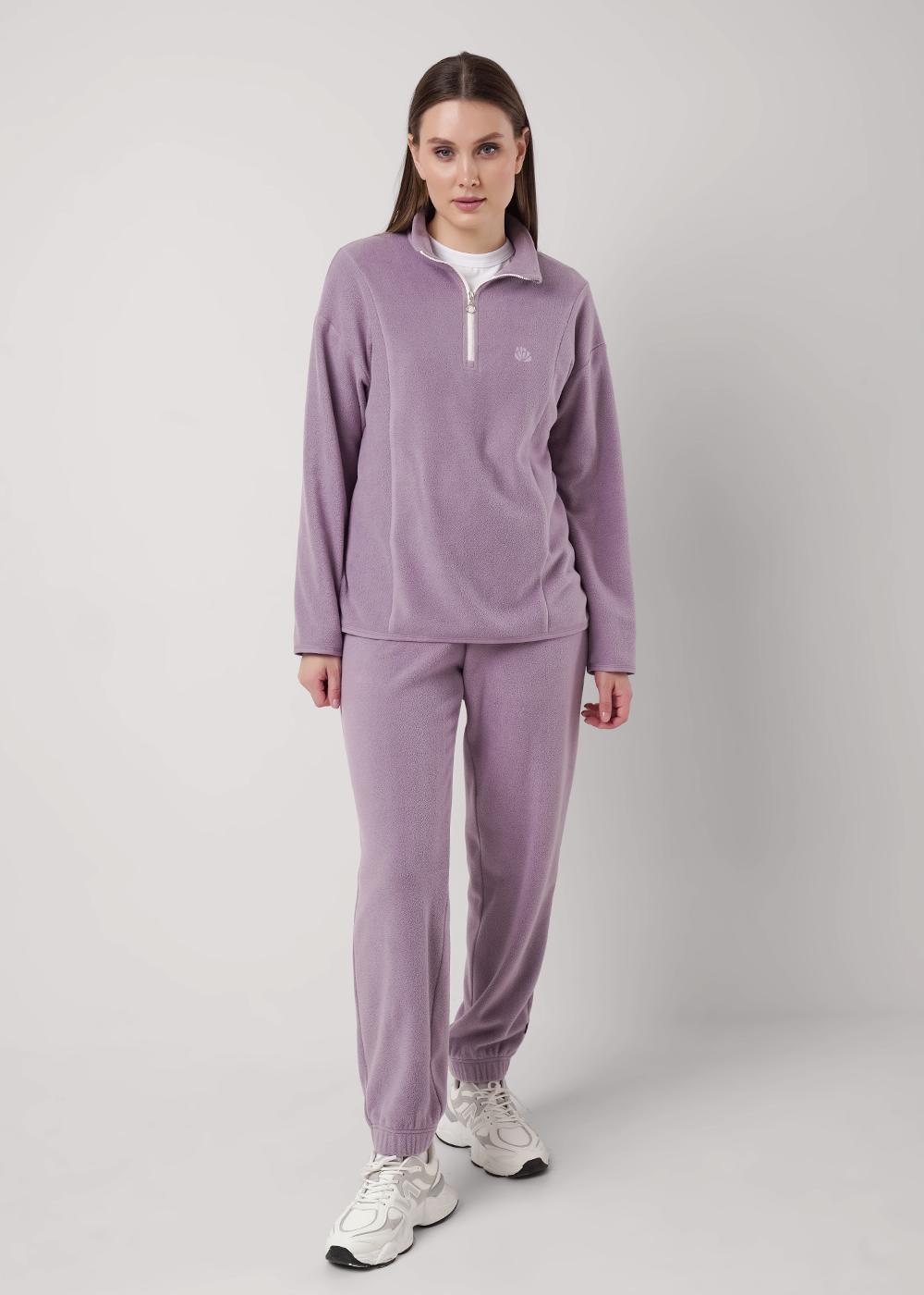 Брюки прямые из трикотажного полотна флис, с внутренней резинкой по талии и низу. Внизу брюк нашивка.