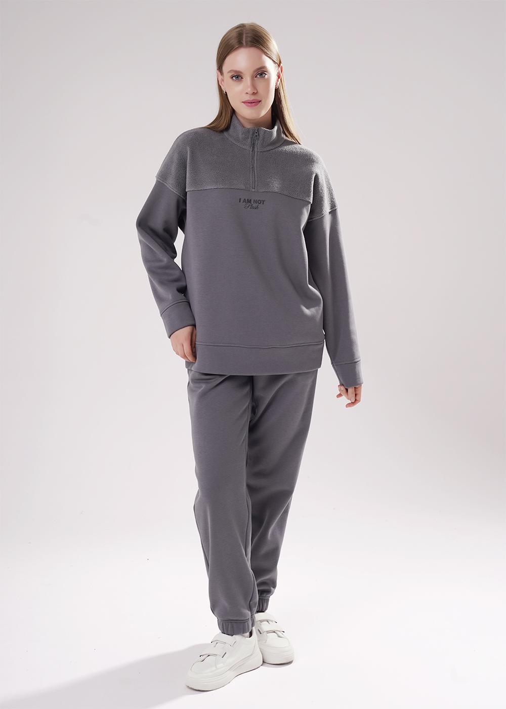 Брюки спортивные из трикотажного полотна футер с начесом "тедди",зауженные книзу. По талии пояс на резинке и внутренним шнуром. По низу брюк подгибка с внутренней резинкой. Боковые карманы с отрезным бочком.