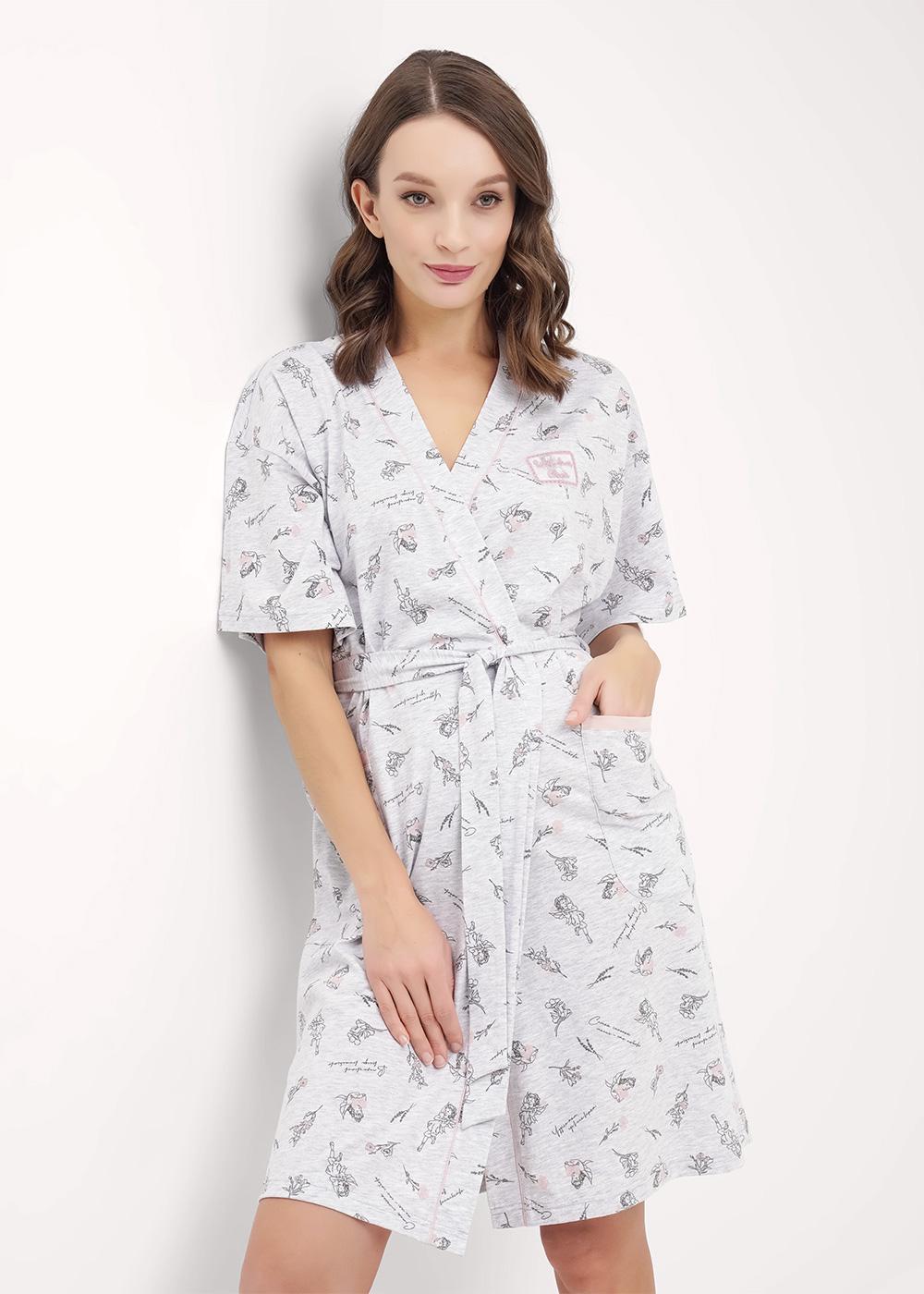 Ст.цена 1690р CLE LX15-1171 Халат женский LX15-1171 меланж св.серый/т.серый