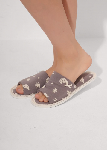 "Описание: Лёгкие, домашние тапочки с открытым носом из хлопкового трикотажного полотна,сверху нашивка бант. Толстая подошва.