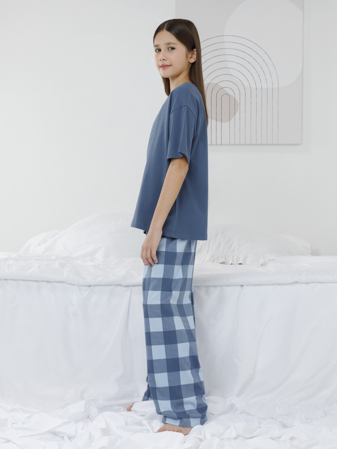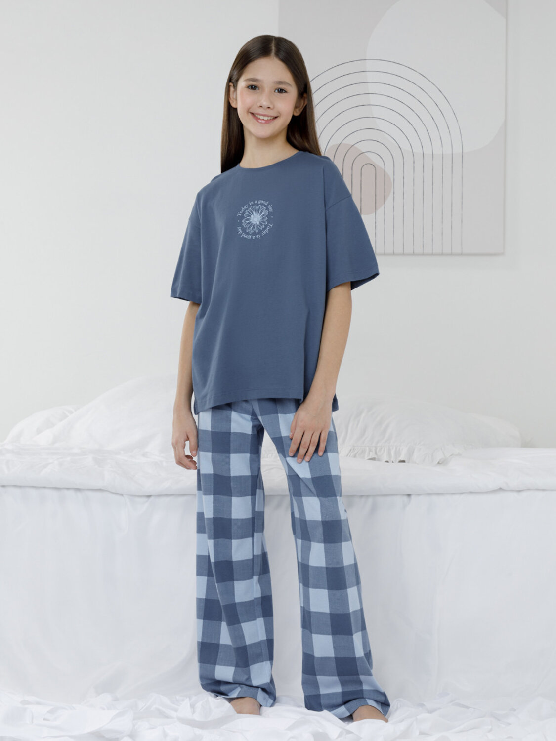 Трикотажная пижама из натурального хлопка для комфортного сна и отдыха. Футболка с короткими спущенными рукавами и прямые брюки с мягкой эластичной резинкой в поясе изготовлены из гладкого трикотажа супрем. Оригинальная набивка и принт выполнены из стойких текстильных гипоаллергенных красителей. Изделие сохраняет цвет и форму после многократных стирок. Все трикотажные полотна производятся в соответствии с нормами швейцарского сертификата ЭкоТекс.
