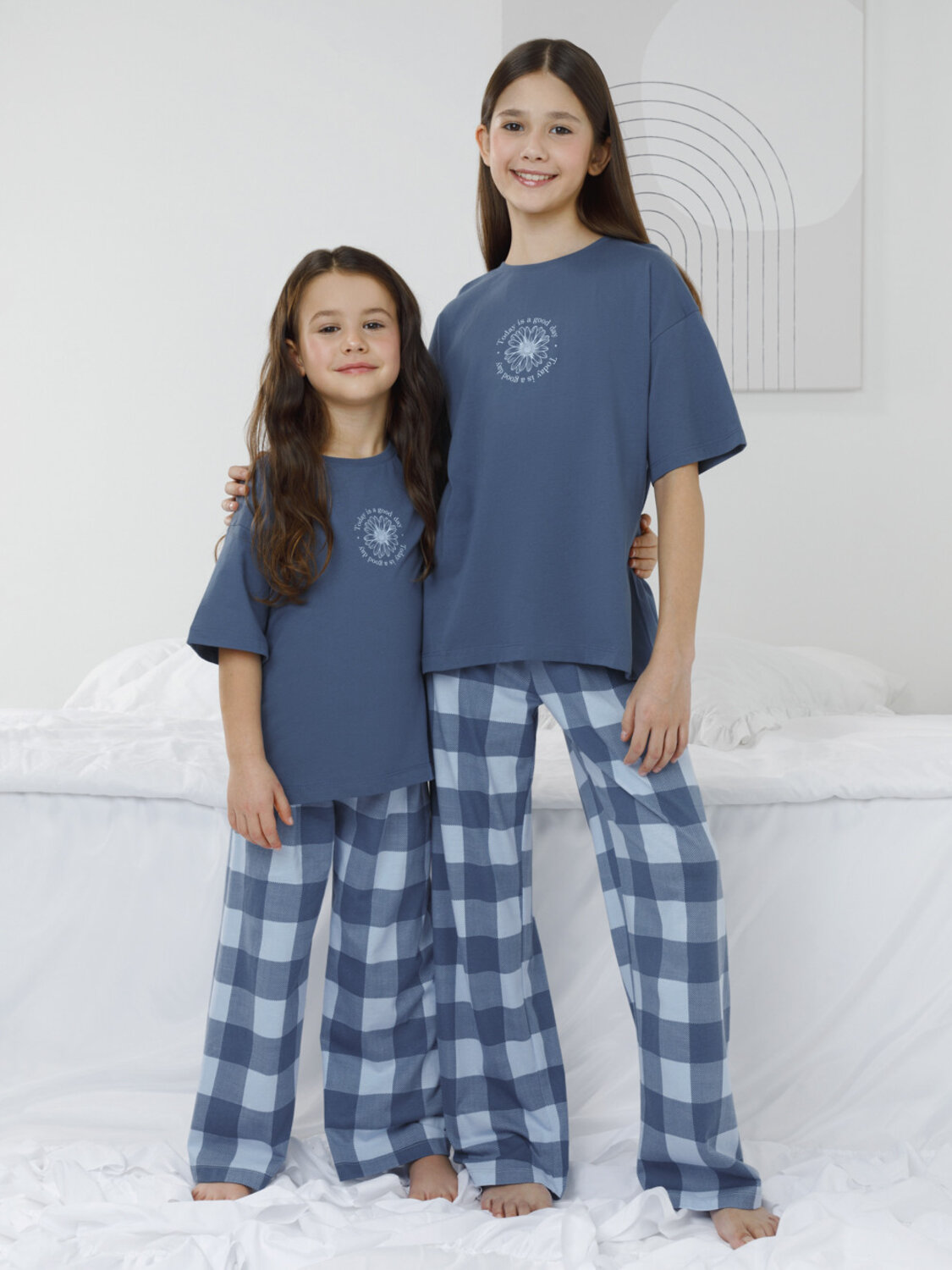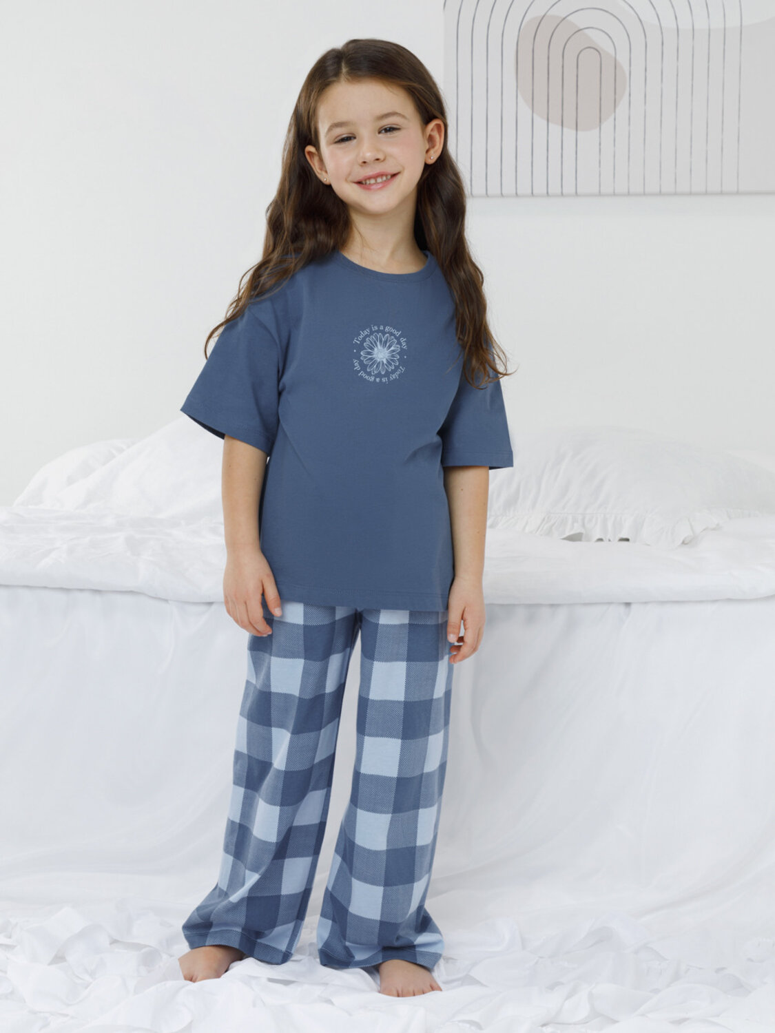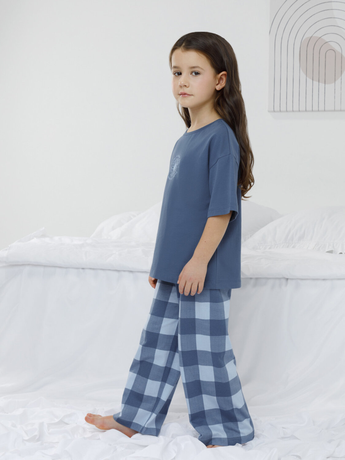 Трикотажная пижама из натурального хлопка для комфортного сна и отдыха. Футболка с короткими спущенными рукавами и прямые брюки с мягкой эластичной резинкой в поясе изготовлены из гладкого трикотажа супрем. Оригинальная набивка и принт выполнены из стойких текстильных гипоаллергенных красителей. Изделие сохраняет цвет и форму после многократных стирок. Все трикотажные полотна производятся в соответствии с нормами швейцарского сертификата ЭкоТекс.
