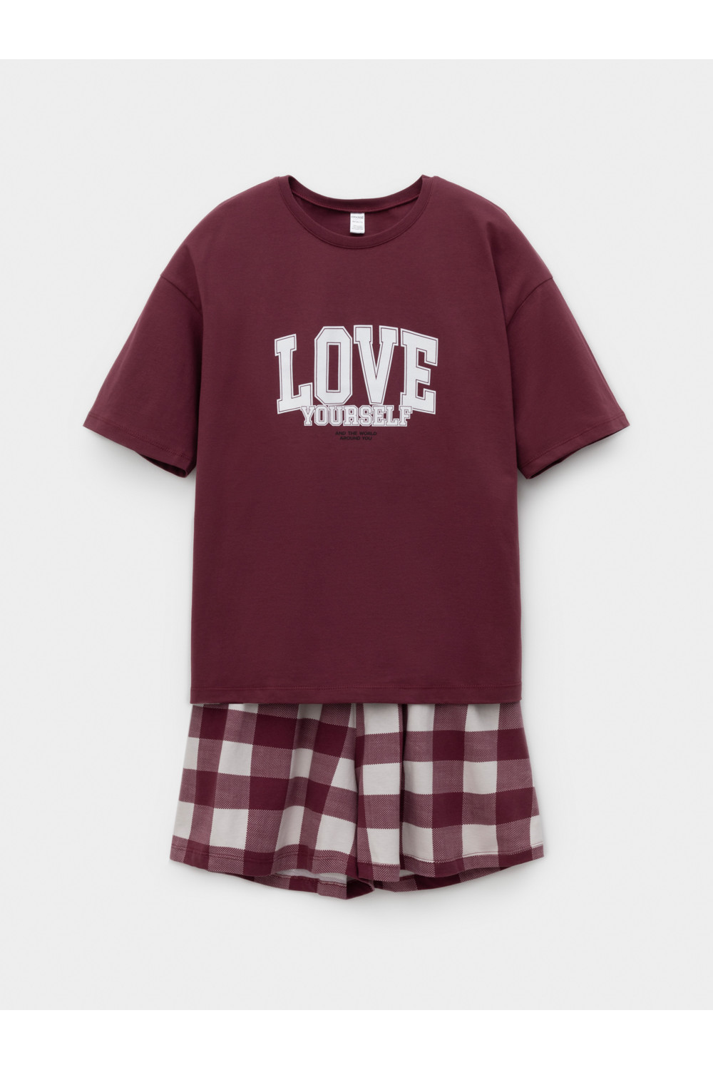 Комплект для комфортного сна и отдыха из трикотажного полотна с набивным рисунком и принтом. Футболка с короткими спущенными рукавами и шорты с мягкой эластичной резинкой в поясе, которые удобно садятся по фигуре. Гладкий материал приятен к телу, не теряет форму и позволяет коже дышать.