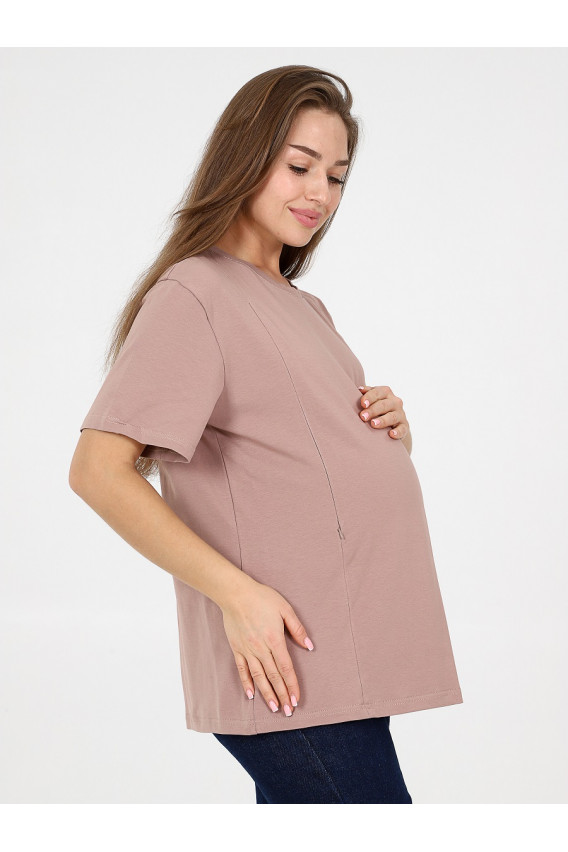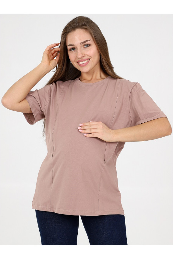 Описание: Женская футболка для беременных и кормящих женщин свободного кроя изготовлена из плотного хлопкового трикотажа пенье. Преимущества такой ткани в качестве: она не скатается и не деформируется после стирки. Разрезы для кормления грудью закрыты потайными молниями.