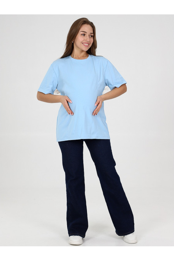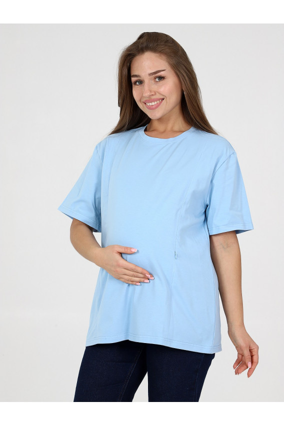 Описание: Женская футболка для беременных и кормящих женщин свободного кроя изготовлена из плотного хлопкового трикотажа пенье. Преимущества такой ткани в качестве: она не скатается и не деформируется после стирки. Разрезы для кормления грудью закрыты потайными молниями.