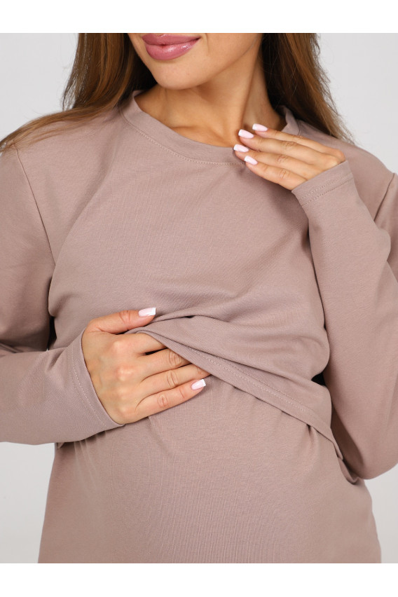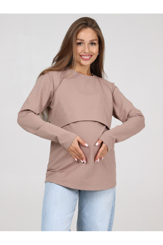 Описание: Лонгслив для будущих и кормящих мам из эластичного мягкого полотна футер 2-х нитка. Секрет для кормления спрятан под верхним коротким слоем. Такой крой изделия считается самым удобным и современным. Лекало оверсайз прекрасно сидит на фигуре.