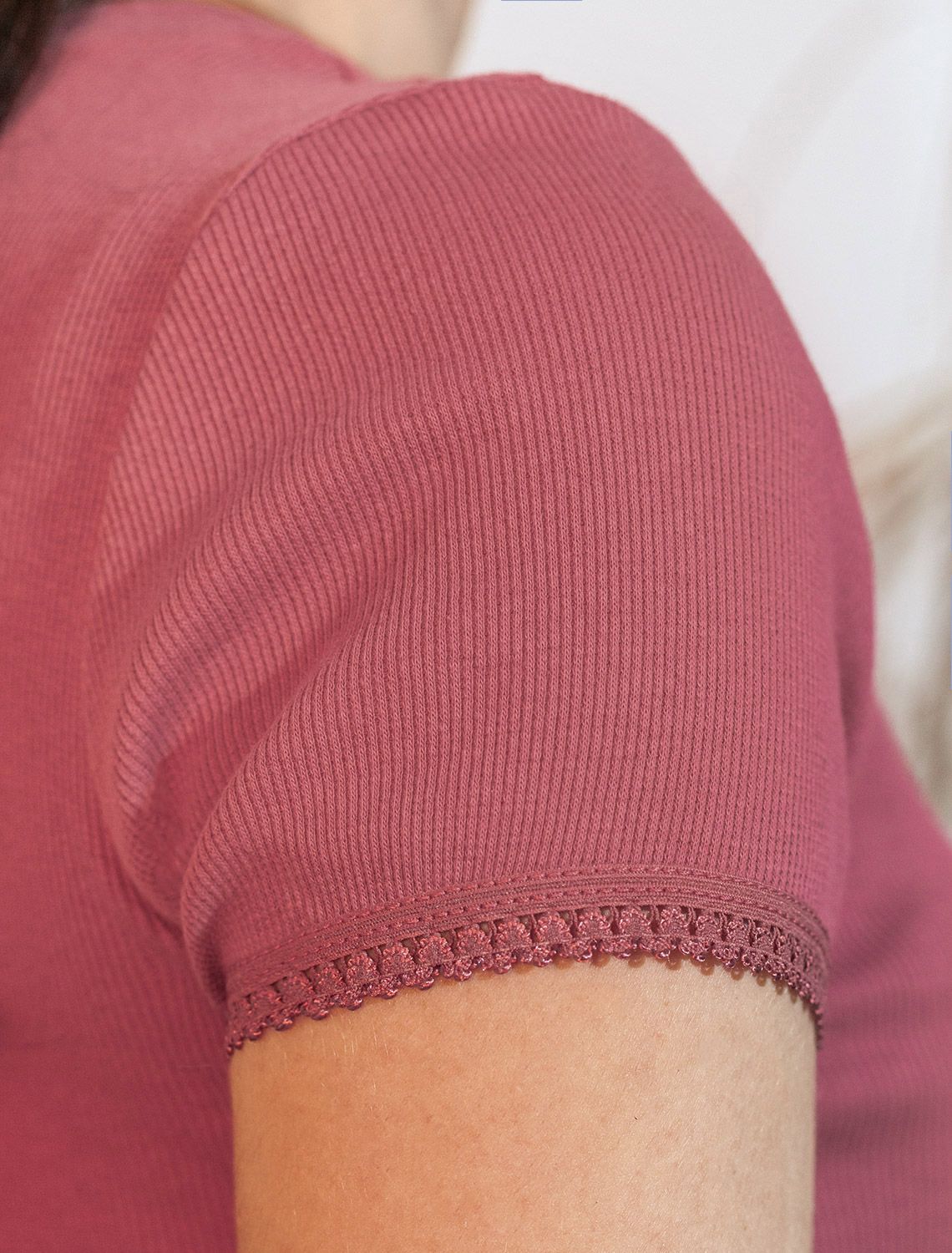 Футболка темно-кораллового цвета с круглым вырезом из из фактурного трикотажа в рубчик идеально сочетается с повседневным стилем и подходит для домашней носки или отдыха. Мягкое полотно из хлопка обеспечивает максимальный комфорт даже в течение длительного времени. Особенность этого изделия — эластичная структура ткани, благодаря чему она хорошо тянется и подстраивается под особенности фигуры. Короткие рукава делают модель легкой и универсальной. На рукавах отделка нежным кружевом в тон основного цвета добавляет нотку романтичности. Футболка подойдет для девушек и женщин, которые ценят уют и удобство. Нежная ткань приятна к телу, не вызывает дискомфорта и позволяет коже дышать, что особенно важно в повседневной жизни. Футболка в мелкий рубчик полуприлегающего кроя визуально вытягивает силуэт и делает фигуру более стройной. Разнообразие размеров позволяет выбрать подходящий вариант для любых параметров, в том числе на большие размеры. Эта красивая футболка практична и незаменима для тех, кто ищет качественные и стильные вещи на каждый день.