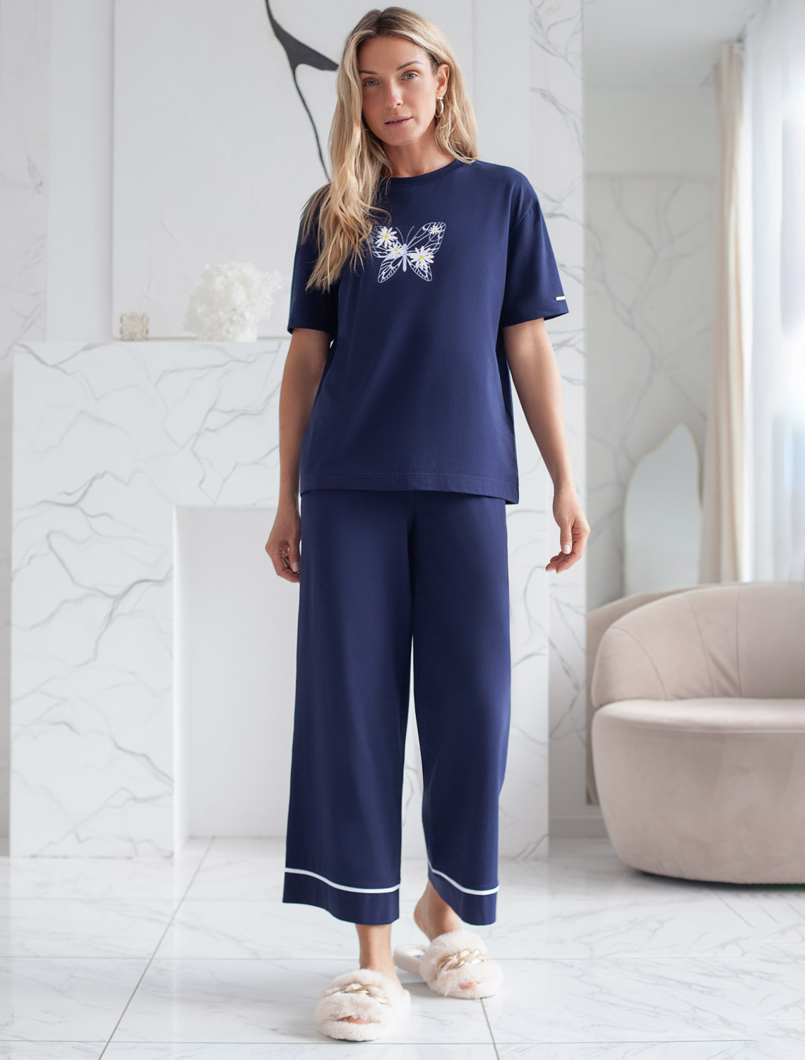Особое внимание привлекает стильный принт в виде бабочки с цветами. Принт выполнен красками с устойчивым покрытием, который добавляет изделию оригинальности и позволяет выразить индивидуальность.