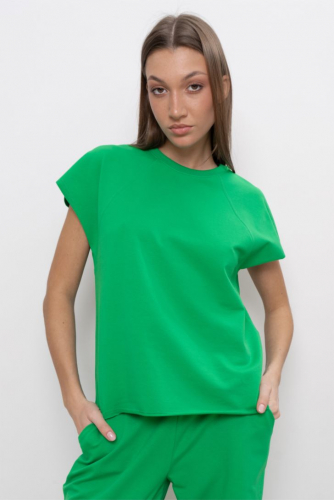 Футболка свободного силуэта из футера. Рукав реглан. Горловина круглая, обработана обтачкой из кашкорсе.