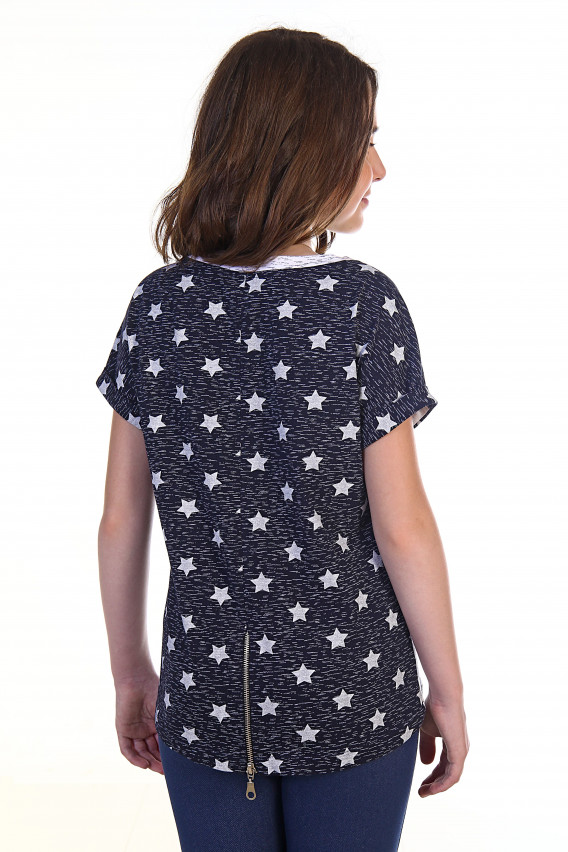 Описание: Полотно кулирка, круглый вырез горловины, рукав спущенный, асимметричная линия низа. На переде изделия вышивка пайетками,на спинке изделия декоративная молния.