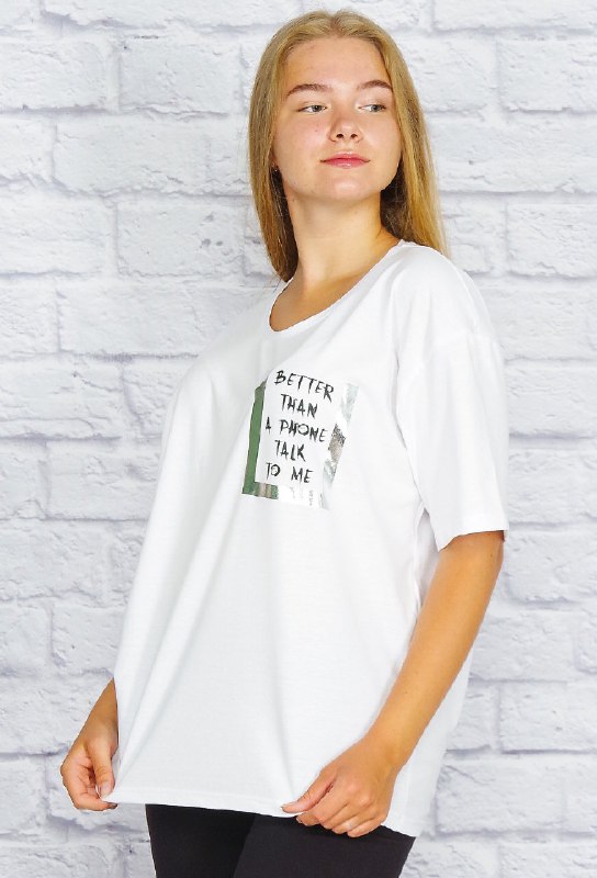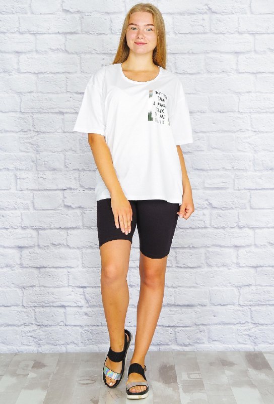 Одна из топовых моделей: футболка размера оверсайз с фольгированным принтом на полочке. Модный удлинённый рукав, спущенное плечо, свободный крой - всё собрано в этой модели. С такой футболкой вы создадите классный образ на каждый день!